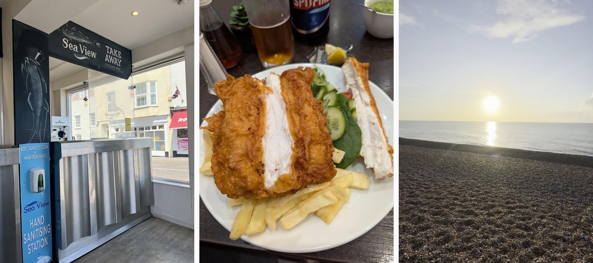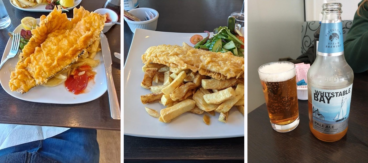 Our bowls club coach drops us off opposite the Sea View restaurant. And tbh it's a great choice for lunch before our match with Deal bowls club. 3 of us had the medium cod & chips & one of us had the Skate wing & chips. The cod was really good with perfect batter & lovely flaky white fish. The skate wing was enormous and would easily feed 2 diners. All the chips were nicely cooked. It's probably not the cheapest fish & chips in Deal but it's got to be one of the best. 100% recommended.