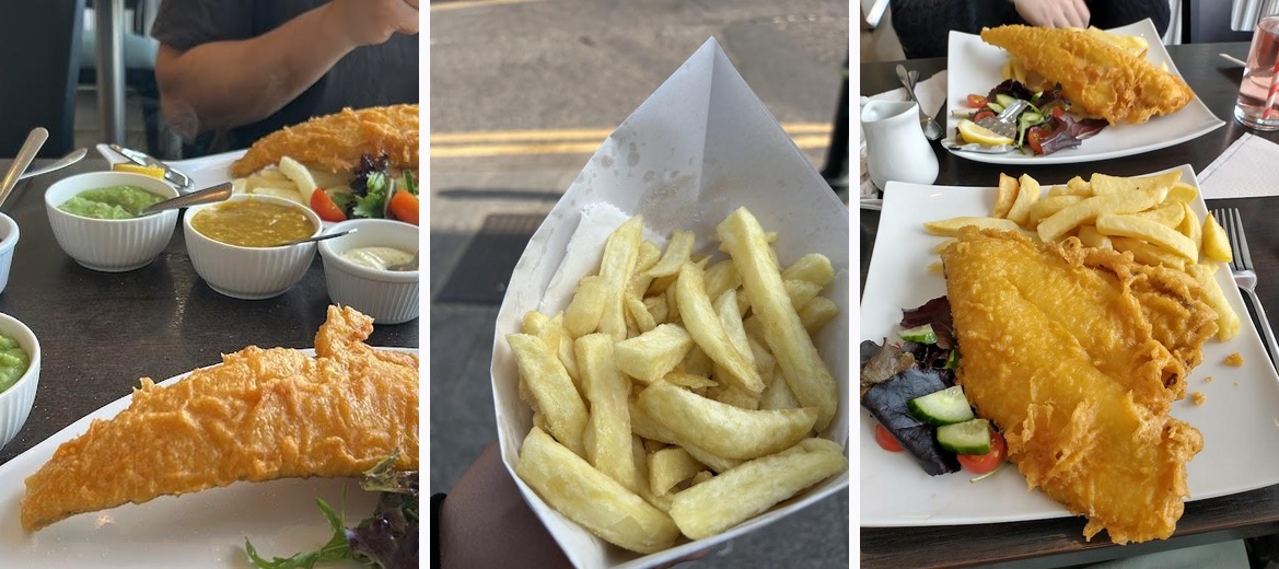 This was a lovely chippy. The food tasted fresh, was hot and with the shop just opposite of the beach, it was a lovely lunch to have. Would recommend and return. PS sorry for the photo. Was excited to take a snap of our furry friends travelling but didn't want them to fall into the actual food 😅